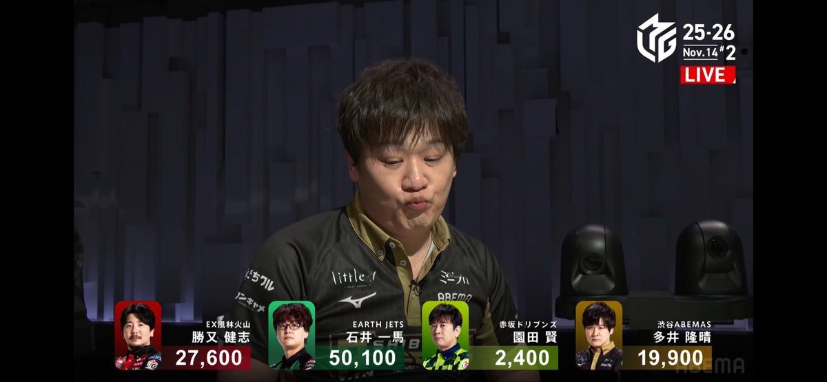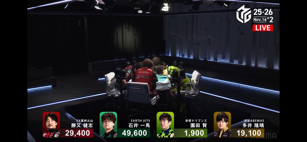 【松本吉弘 】1試合目 4位 -68.1pt もってぃお疲れさまでした!! 今日は終始苦しかった!!切り替えていきましょう👏 次はたかちゃん!お願いします!!🔥 #松本吉弘 → #多井隆晴 #渋谷ABEMAS #Mリーグ ▼生配信中の試合はコチラ abema.tv/channels/mahjo… pic.x.com/Jeof6O238U