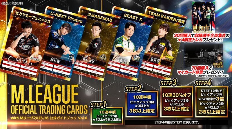 / 🀄️ #Mリーグトレカ 「Mリーグトレカ with Mリーグ2025-26公式ガイドブック Vol.6」発売! \ #松本吉弘 #竹内元太 #黒沢咲 #下石戟 #鈴木優 公式ガイドブックに掲載の選手情報がトレカに登場🎉 プロフィールや麻雀観などたっぷり収録! お得な割引&特典も🙌 m-league.orical.jp pic.x.com/Qffby2kPXe