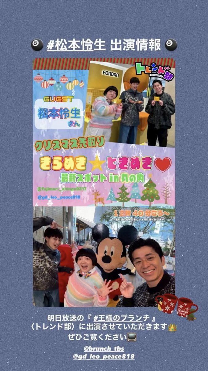 TBS 『王様のブランチ』 왕의 브런치 출연 정보 【11/29(土)】午後の部 <トレンド部> クリスマス先取り!🎄 きらめき🌟ときめき🩷最新スポットin丸の内 #王様のブランチ #松本怜生 #마츠모토레오 pic.x.com/cyYc3sq5R2