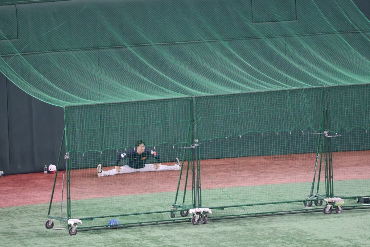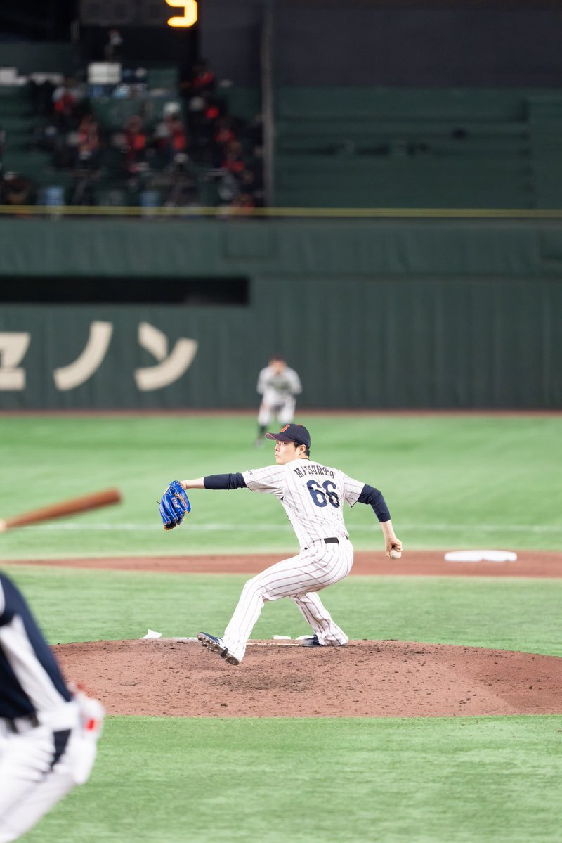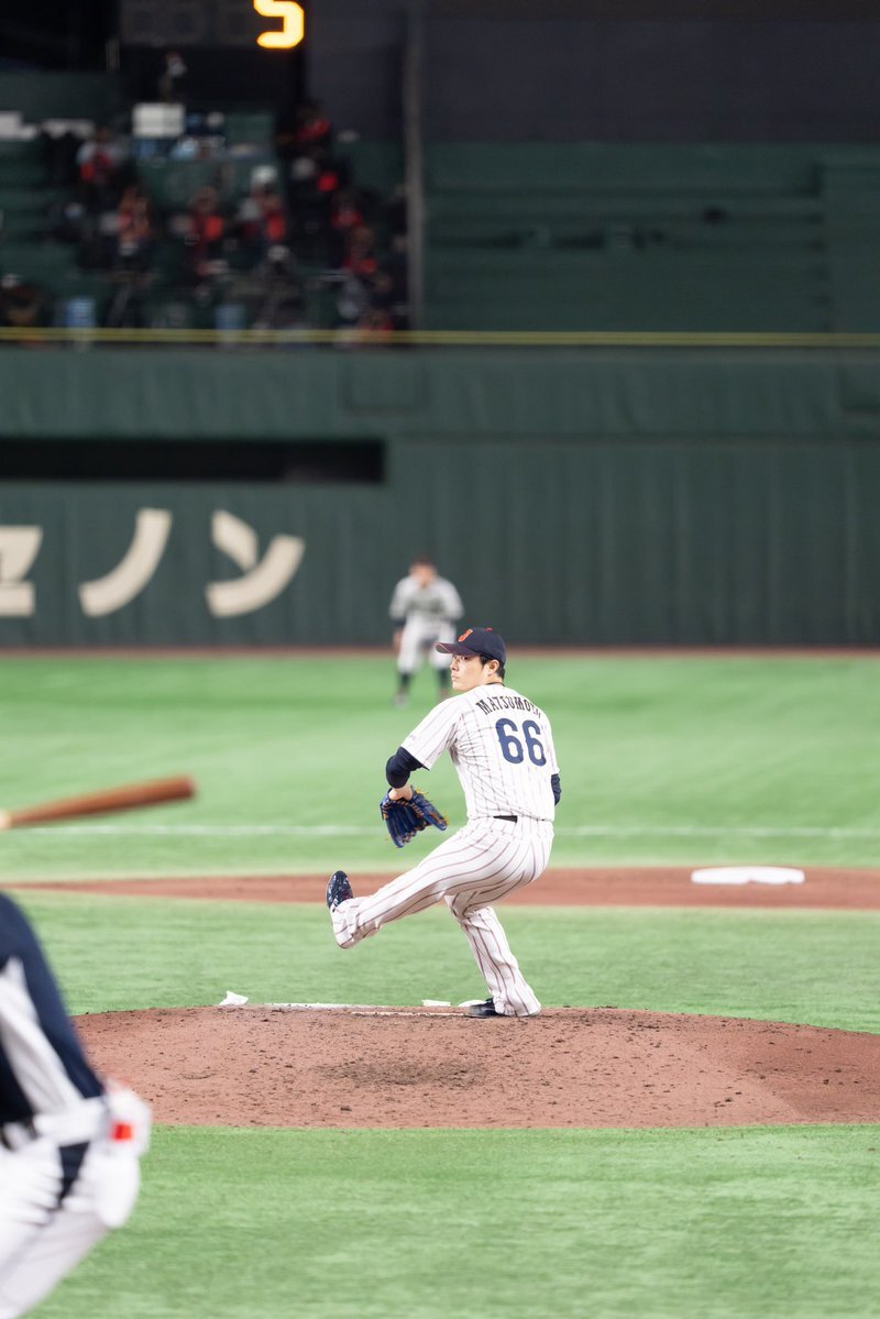 カラダ柔らか~い✨ 遠くて誰かわからなかったけど 66が見えた 松本投手かな? パノラマからだったので画質死んでます #侍ジャパン #ソフトバンクホークス #松本裕樹 pic.x.com/rtY7Do29RV