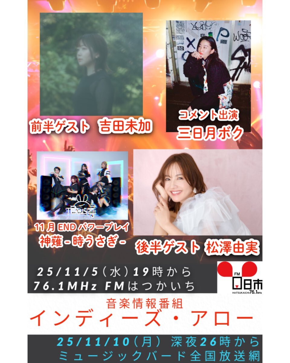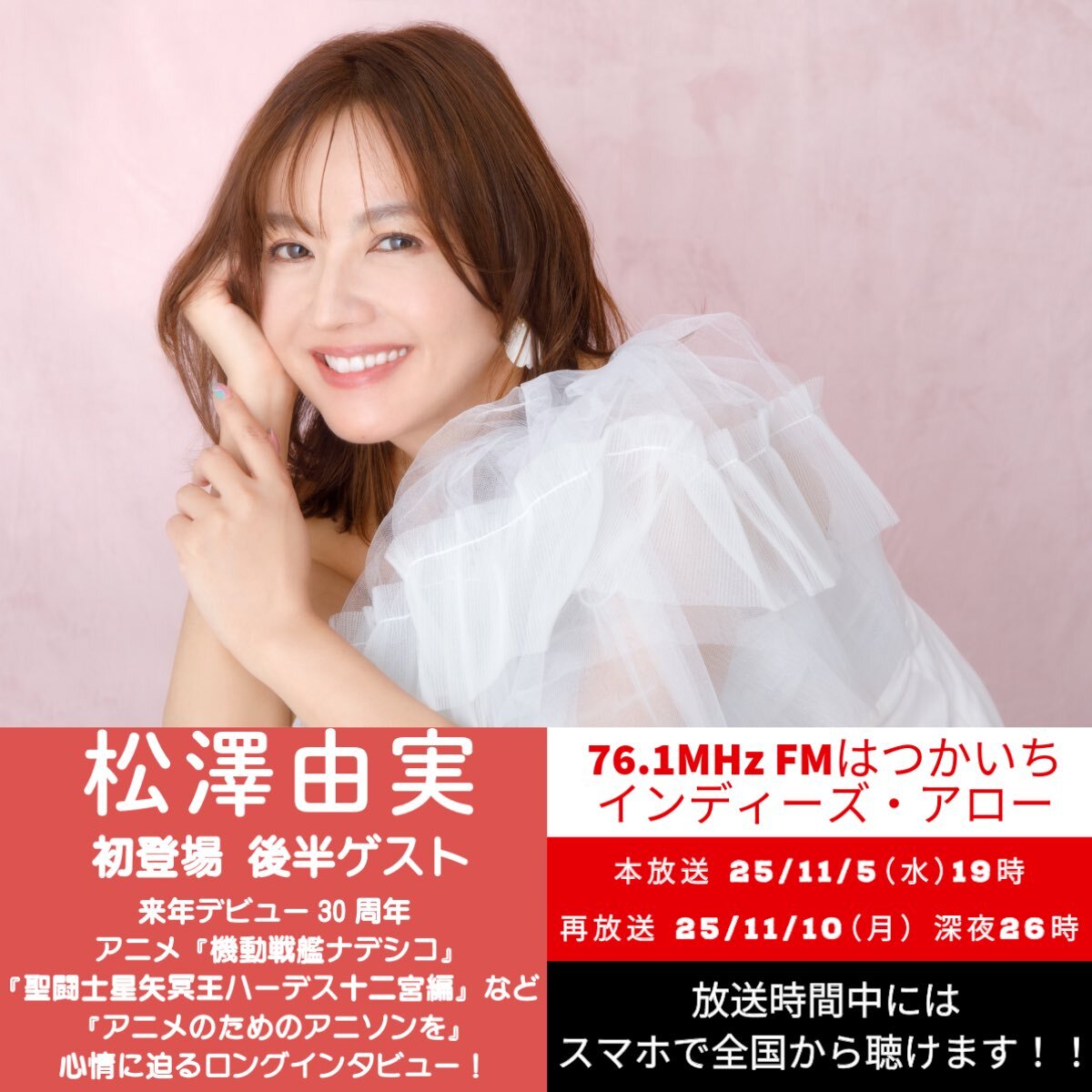 #ラジオ #音楽番組 #インディーズアロー 76.1MHz #FMはつかいち 放送📻 @fm_hatsukaichi ▼25/11/5 後半ゲスト #松澤由実 @yumimania ▼直近ライブは11/23 名古屋 ↓ x.com/yumimania/stat…