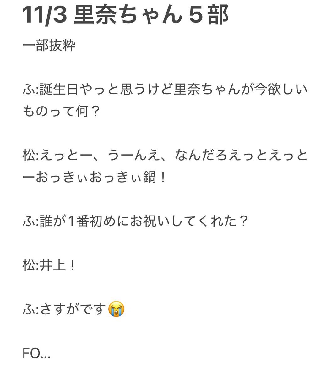 里奈ちゃんの誕生日お祝いしたんだけど欲しいもの聞いたらめちゃくちゃ悩んだ結果おっきぃ鍋が欲しいって返ってきて可愛いな〜と思いながら次の質問で泣いた #松田里奈今日もあなたが好きだ里奈 pic.x.com/AkXvickjWw