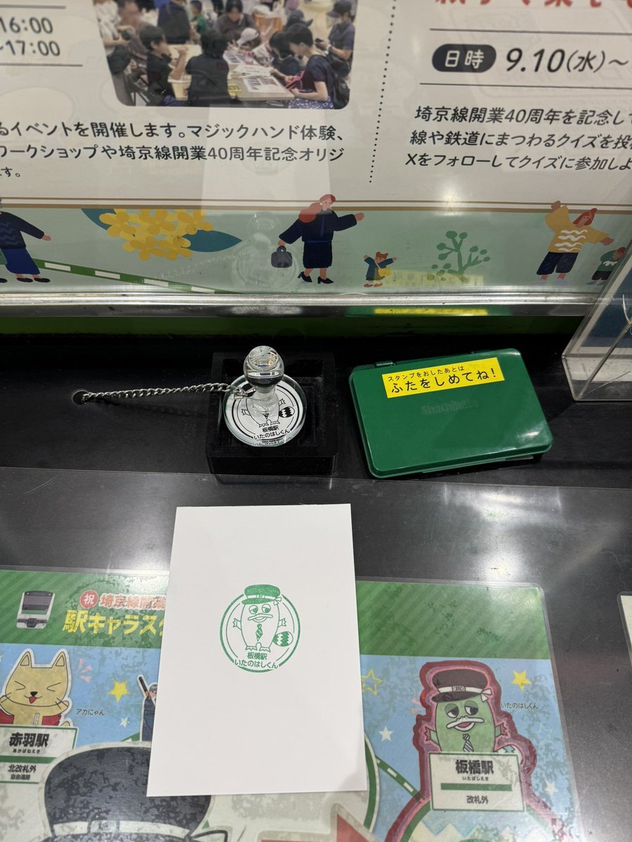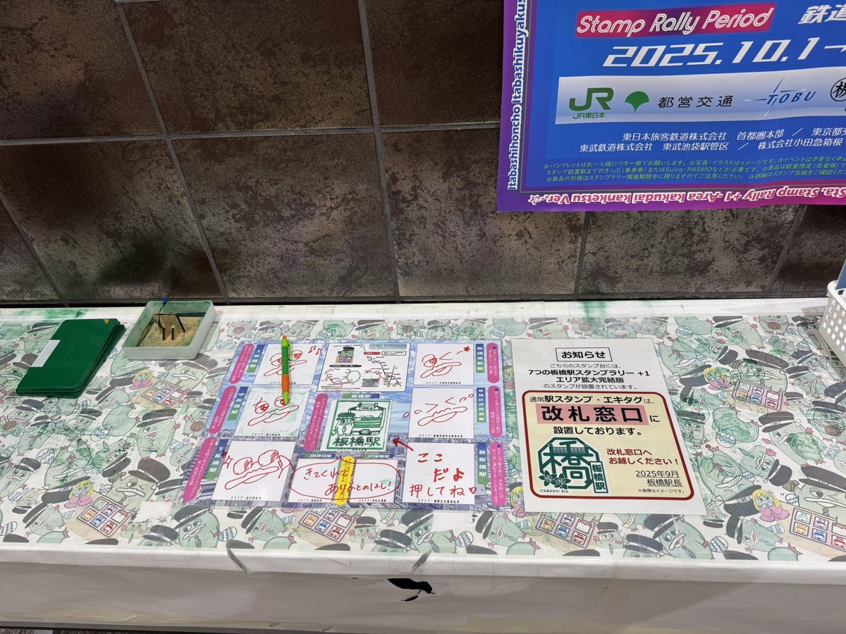 板橋駅。2種類のスタンプラリーがそれぞれ改札外に設置されている。 今回参加の埼京線駅キャラスタンプラリー印は、もともと支社印が設置されているスタンプ台の方に設置されている。 印面状態は良好!スタンプ台紙の在庫は無し。 #こうくんの駅スタンプ旅 #駅スタンプ #板橋駅 pic.x.com/vRzAgElTJj