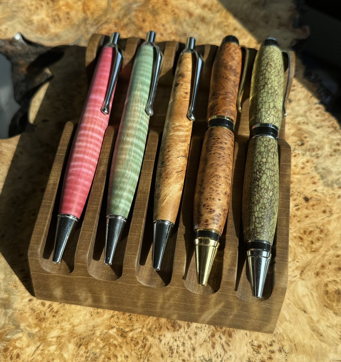 今日は👼の1ヶ月検診の為、 開店ダッシュで行きました🧸✨️ 凄く綺麗な『朴(ほお)』のペントレイをゲットしました(ㅅ´ ˘ `) 早速製作した #木軸ペン を載せて 撮影しました✨️ お近くの方は是非 脚を運んでください( ´灬` )ノ #枕木 #銘木 pic.x.com/5vQdJTWcFe x.com/kikirinki_wj/s…