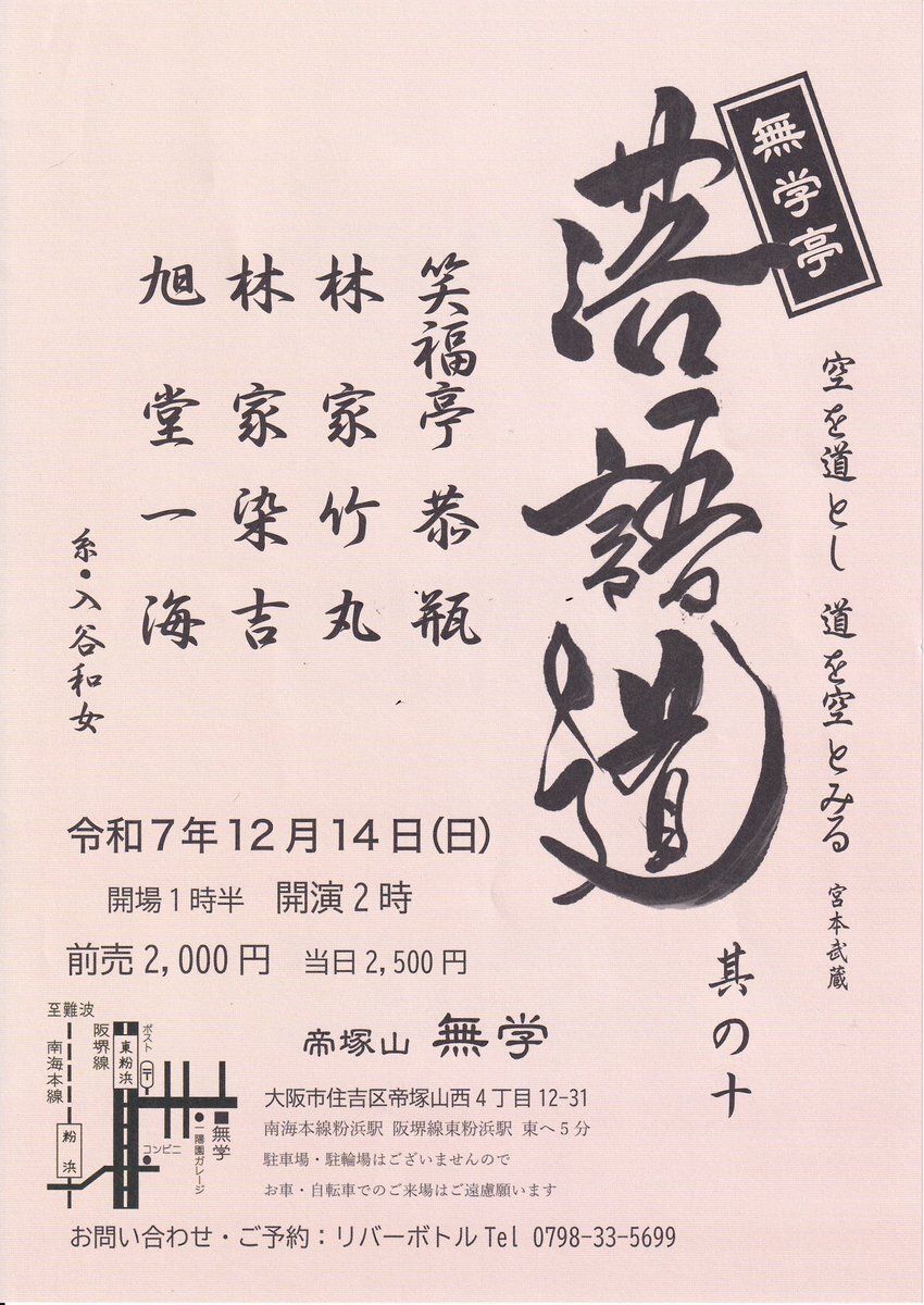 →設定は秀逸、持ちネタになりそう。染吉氏は声に力がある。所作が大きい。旦那が御簾内で語る理由が明確に判るのは聴く客に親切である。「三枚起請」の女形は米朝一門でも屈指の上手さ。「国宝」で横浜流星の代演ができそう。成長株の弥っこ氏に染吉氏が十八番で応えた良き会。#林家染吉 pic.x.com/lvLvubzlOO