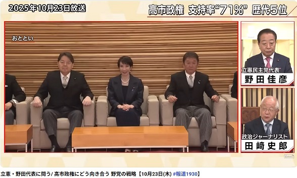 10/23(木)の #報道1930 は... 『 #高市総理 に #野党 はどう対峙 旧知の #立憲野田代表 に問う 覚悟と戦略』 【ゲスト】 #野田佳彦 @NODAYOSHI55 (立憲民主党代表) #田﨑史郎 (政治ジャーナリスト) #林尚行 @thayash11297025 (朝日新聞コンテンツ政策担当補佐役) 詳しくはHPへ👇 pic.x.com/HvhlvWdh3l