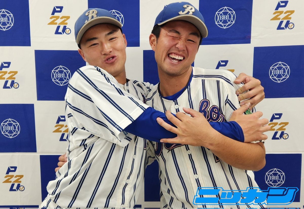 #東都大学野球入れ替え戦 1部昇格した #立正大(左)2試合連続好救援の #林燦 投手と #斎藤星太 主将。劣勢の中でも「全員が最後まで勝利への気持ちはブレていなかった」と斉藤主将。春が終わってからいつも「絶対にいける!」と口に出し続けたそう。有言実行、その思いが力をくれました😊 pic.x.com/EMjtNnLQYx