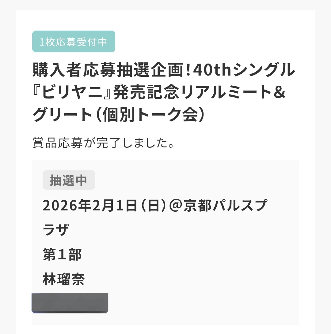 CD特典のもろもろの1次応募30日の23:59までなので早めに済ませましょー💪 自分はリアミとリアルサイン会とソロレーンになった林のオンラインミーグリに応募しました! ソロレーン嬉しい👏👏👏👏👏 #林瑠奈 pic.x.com/ROf1IMJgTL