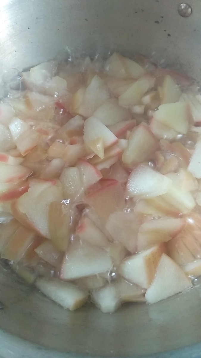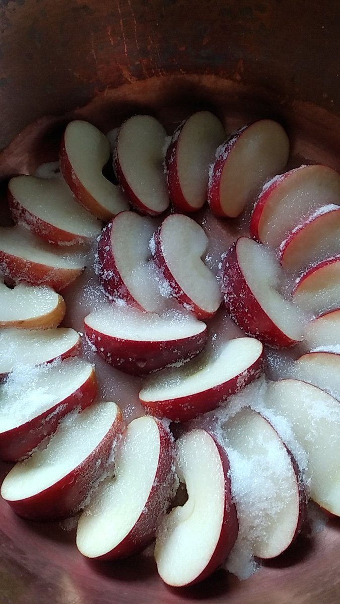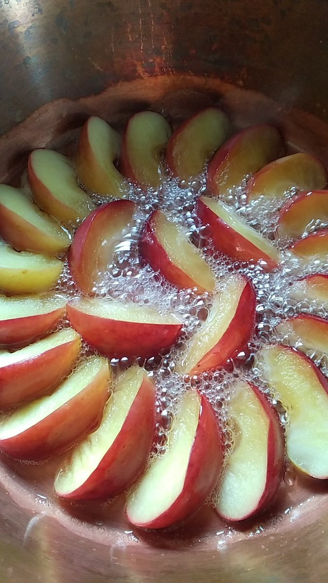 りんご仕事2つ目(同時進行)、こちらも甘煮。スライスして水と砂糖入れて煮たもの。 前作った甘煮が美味しくて、またカスタードとクリームチーズでサンドしたくなったので作った。🍎 #果物加工 pic.x.com/SaPPudfntT
