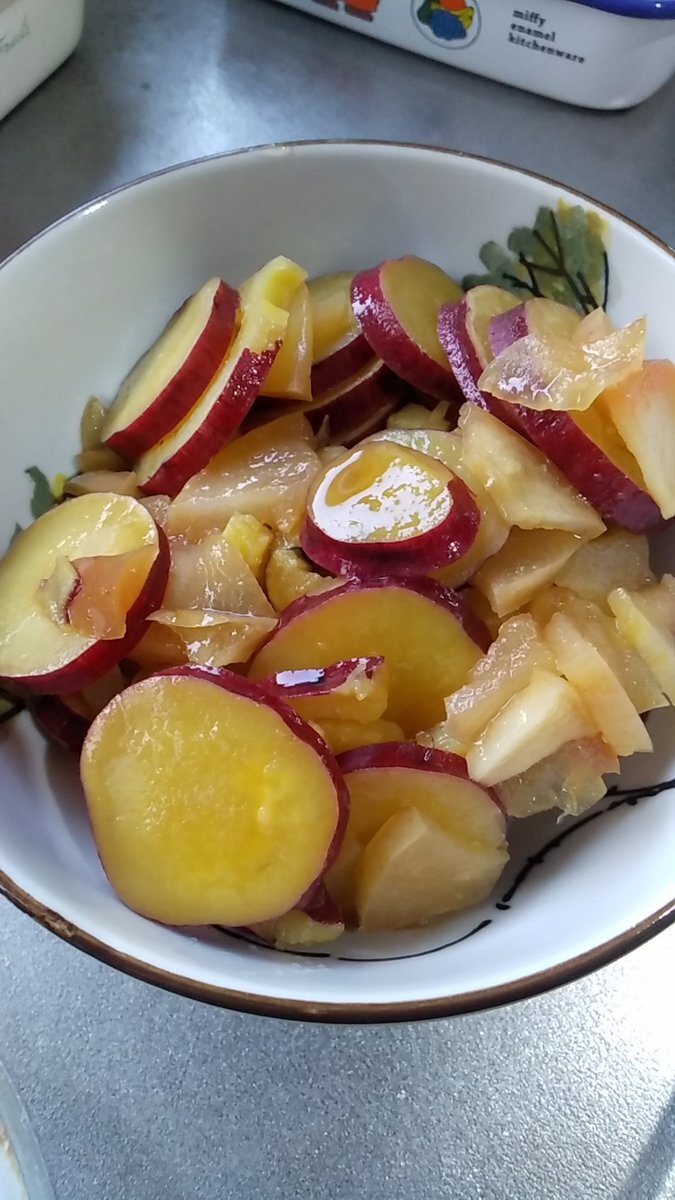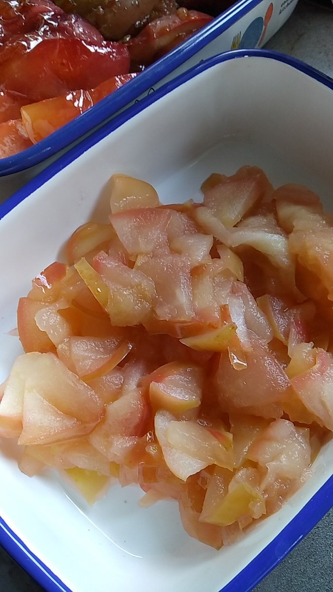 今日生協から紅玉届くので、買い置きのりんご3個を加工した。 りんご1個とサツマイモで「何食べ」シロさんのレモン煮、りんご2個で甘煮。レモン煮はこのまま食べ、甘煮はおやつの元として色々展開予定。 #果物加工 #お菓子作り pic.x.com/5e0wlvTk8y