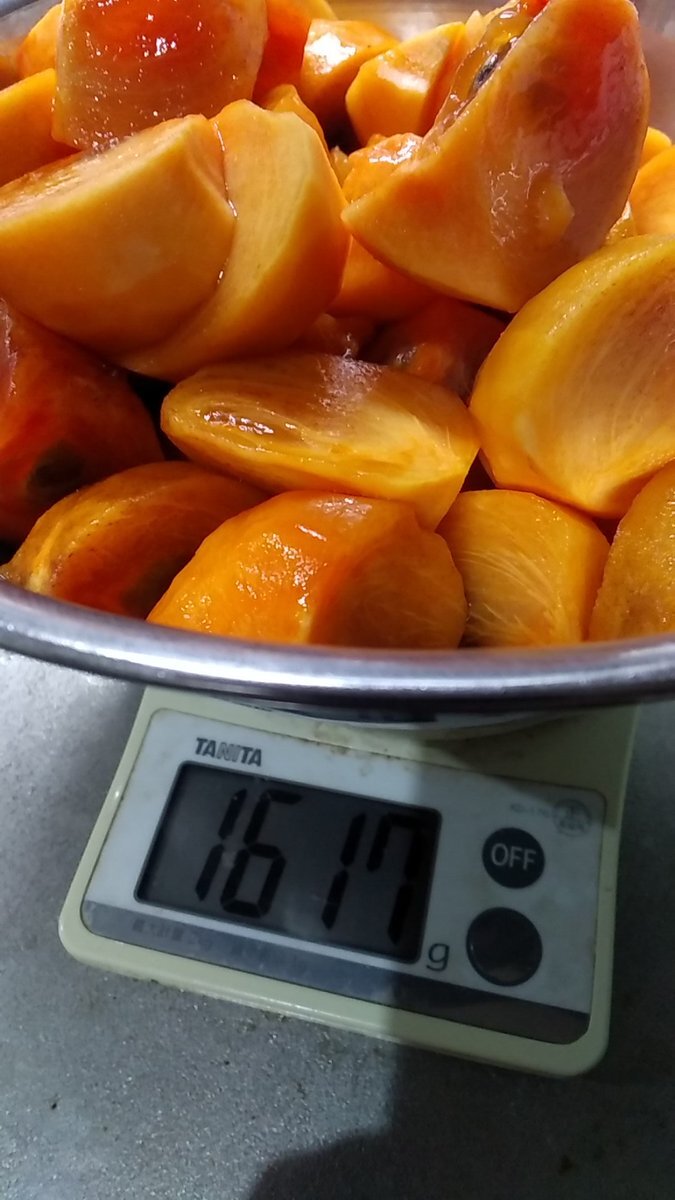 →1.4kg分の柿。ジャムにする予定だが、取り敢えず手をつけて気が済んだので煮るのは朝になってから、と冷蔵庫に入れた。もう一度寝てみる。 #果物加工 #柿仕事 pic.x.com/vZt4Qj3plj