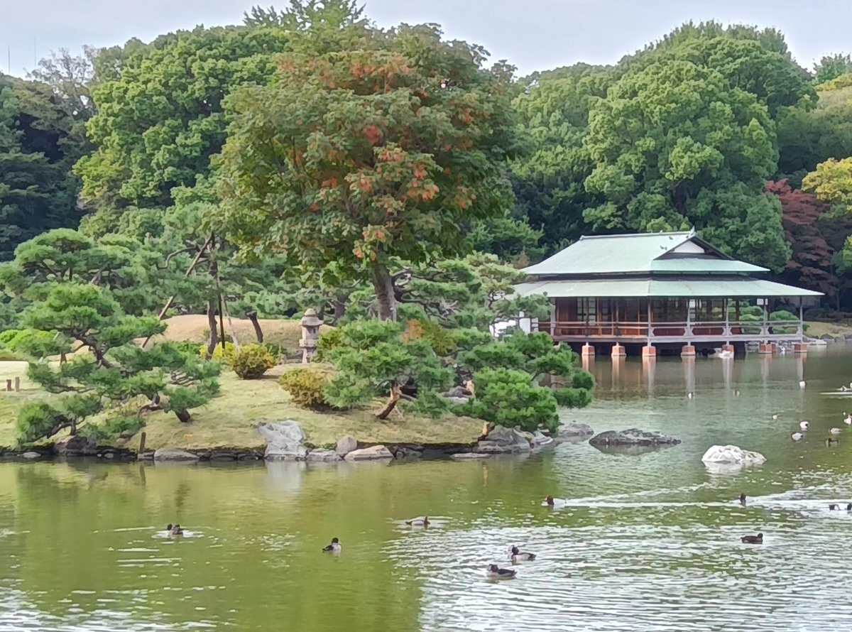 おはようございます #清澄庭園 です🙂中の島の #ハゼノキ の紅葉が若干進んだようにみえます(写真中央) #東京 #江東区 #清澄白河 #大江戸線 #半蔵門線 #黄櫨 #櫨の木 # pic.x.com/rRuvnGJyAV