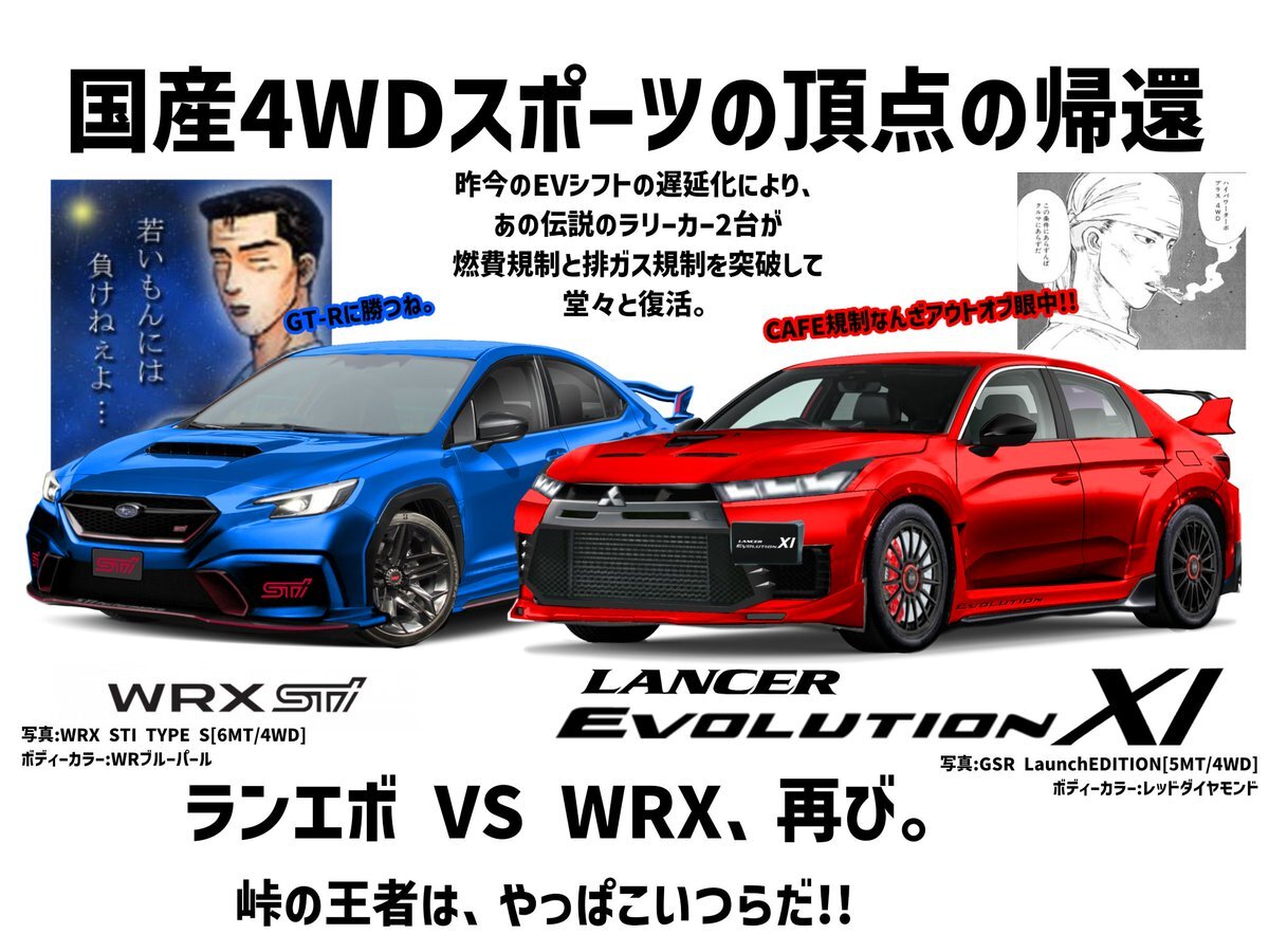 いつかは、実現してほしいこの並び #カーコラ #架空仕様 #ランエボ #WRXSTI 新型STIコンセプトが発表されたので、ランエボのカーコラを作り直そうか。 pic.x.com/YNDUSdM59z x.com/NEWCARinjapan/…