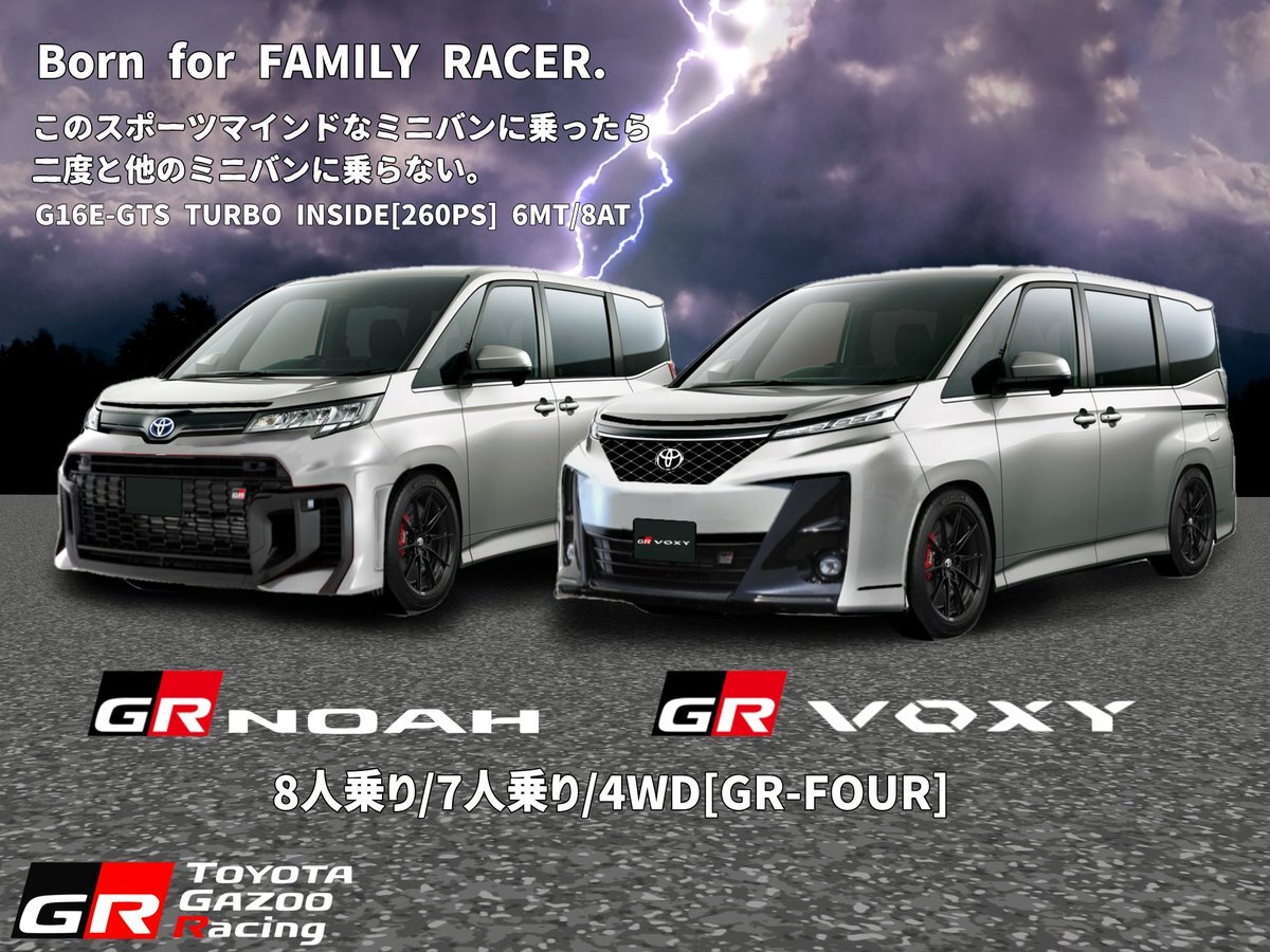 奥さんの希望でミニバンに乗ることになってもスポーツマインドを諦められないあなたへ。 1.6L G16E-GTSターボエンジン×GR-FOUR搭載。 GR NOAH/GR VOXY、誕生。 #カーコラ #架空仕様 #トヨタ #GR #ノア #ヴォクシー pic.x.com/pzbbKYMrfR