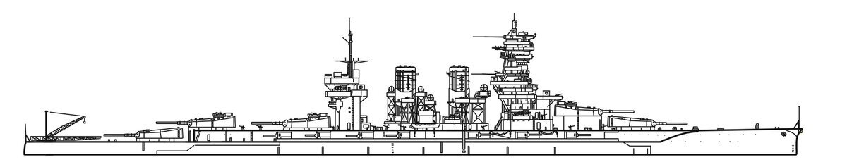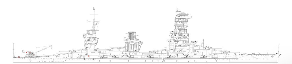 扶桑型二番艦山城 1942年。山城の第四砲塔が爆発する事件が発生した。当初はミッドウェー海戦での敗北も重なり混乱したが、一部海軍艦政本部技官の発言を受け,空母機能を搭載する改装を行うことを決した。写真は改装終了後の山城の写真である。 #架空艦 #架空兵器 #架空戦艦 #TLにお船を流そう pic.x.com/wbmnEsEutU