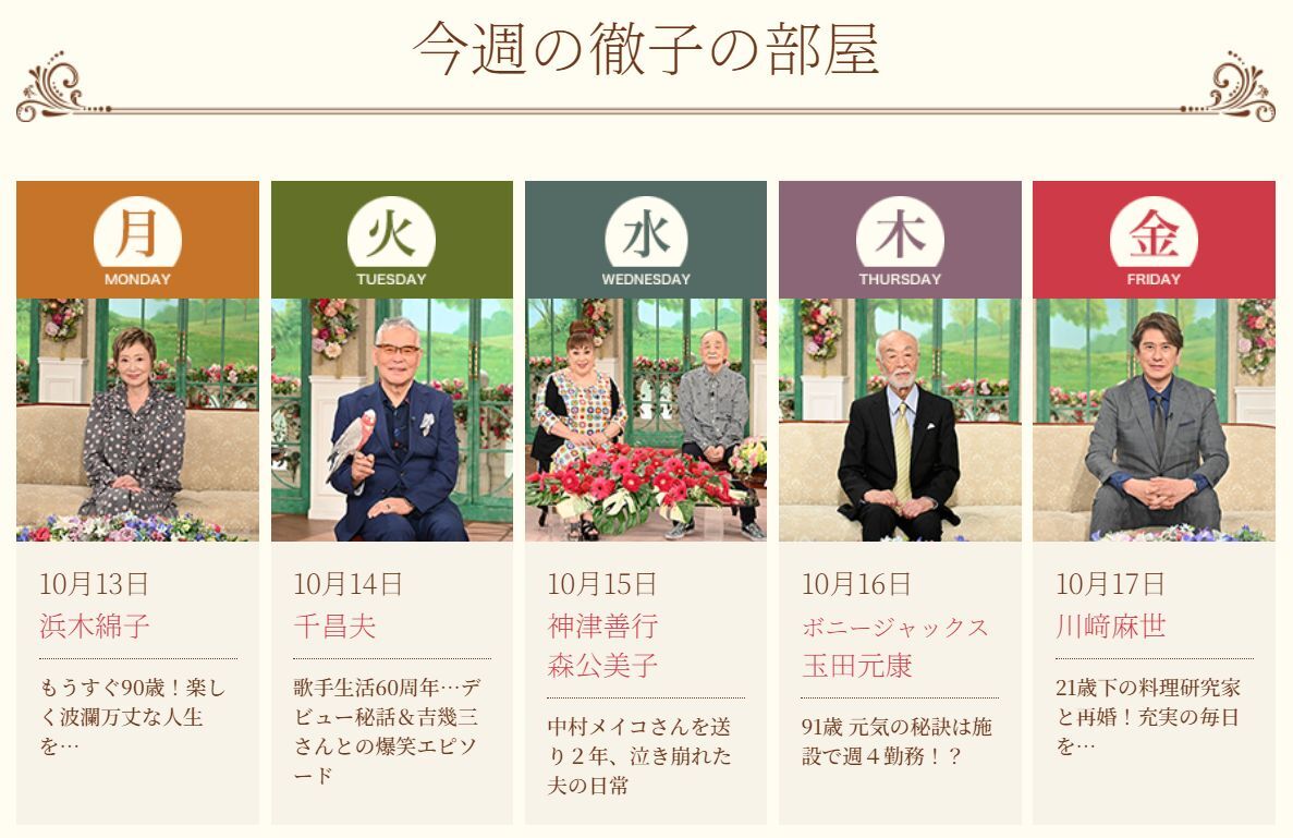 📺#徹子の部屋 今週のゲスト ★ABEMA/TVerで一週間無料配信 10/13(月🎌スポーツの日)#浜木綿子 さん 10/14(火)#千昌夫 さん 10/15(水)#神津善行 さん #森公美子 さん 10/16(木)ボニージャックス #玉田元康 さん 10/17(金)#川﨑麻世 さん x.com/volante_libero…