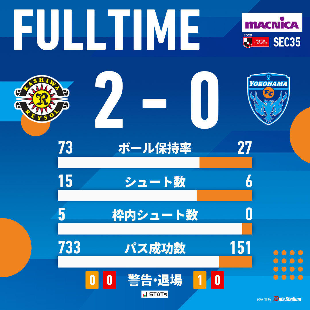 試合終了 明治安田J1リーグ 第35節 #柏レイソル 2-0 #横浜FC #yokohamafc #柏横浜FC
