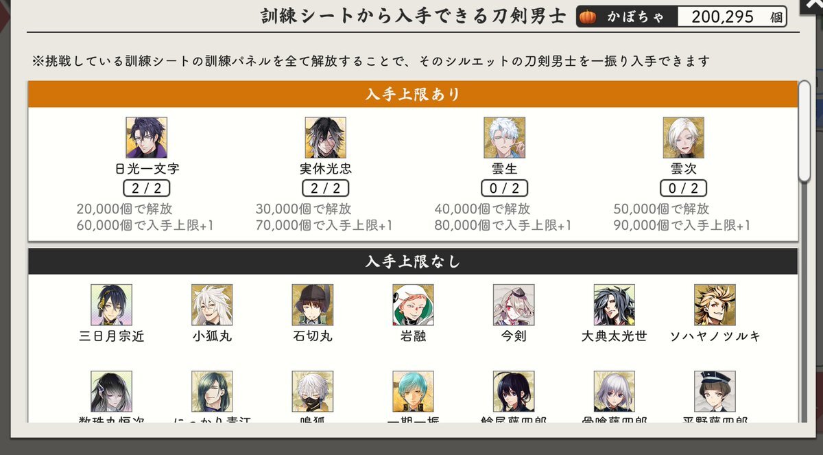 レア度高い・入手難易度高いキャラで一度も来なかったのは、ソハヤ、数珠丸、大般若、豊前、謙信、南泉 あたりかな? 村正、物吉、明石、浦島、長曽祢、太鼓鐘、不動 あたりは入手難易度高くないけどまだ乱舞10じゃないから来てくれて嬉しかったな。 #柚子本丸日記