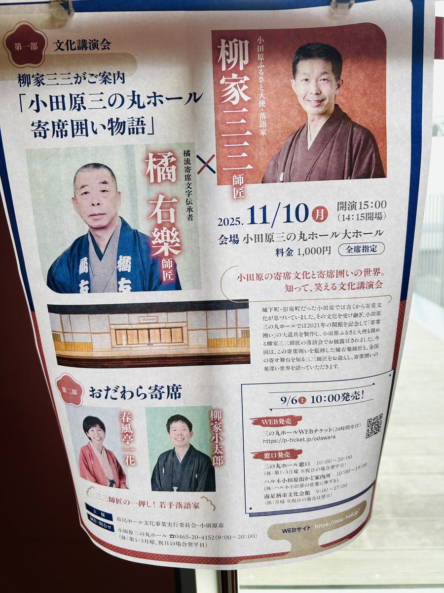 【文化事業/プレゼント】 11.10(月)「#柳家三三 がご案内〜 #小田原三の丸ホール 寄席囲い物語〜」 公演当日に抽選で30名の方に #橘右樂師匠 の直筆色紙をプレゼント❗️ 縁起がいい文字を書いていただきました✨ 極めて稀な”寄席囲い”の文化講演会をぜひお楽しみください😌 ✅ ooo-hall.jp/event/20251110… pic.x.com/zVAzlhmcvL
