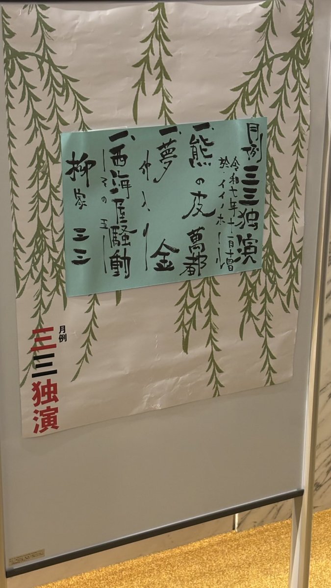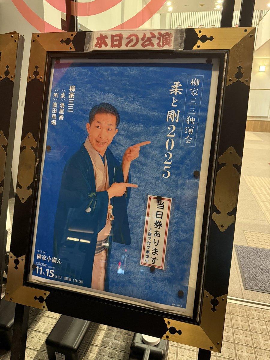 ⬛️🟧🟩⬛️🟧🟩 2025/11/14 【月例 三三独演】 初めて「月例 三三独演」を観覧👀 伯山先生の客ほど陽キャもいなければ、異様な緊張感もなく、程よくユルい感じが好印象✨ 三三師匠は飽くなき向上心で、まだまだ新しい噺を覚えようとチャレンジし続けている事がカッコいい‼️ #月例三三独演 #柳家三三 pic.x.com/irUvKVcD4i