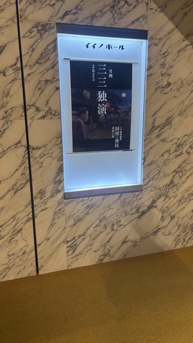 仕事終わりで霞ヶ関『イイノホール』へ。月に一度のお楽しみ #月例三三独演 7月からの続き物「西海屋騒動・其の五」壮大すぎてもはやあらすじを追えず。そらでもまぁ鮮やかで。 開口一番の萬都さんは以前どこかの会で…というのを“ポイント”の話で思い出した。あれはウケるわ。 #柳家三三 pic.x.com/BehrSpTlnd