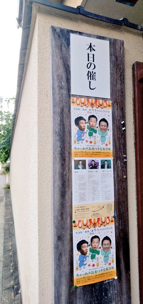ちゃっかりおまつり美案寄席@森本能舞台 三三師匠の『牛ほめ」はレアかもしれない。マクラで「寿限無」も後半をたっぷり。 べ瓶さんも「錦木検校」を大熱演。 わん丈さんは華やかで軽やかで益々真打ちの風格が出ていて眩しかったです。 #柳家三三 #笑福亭べ瓶 #三遊亭わん丈 pic.x.com/ejs9HaeKfT