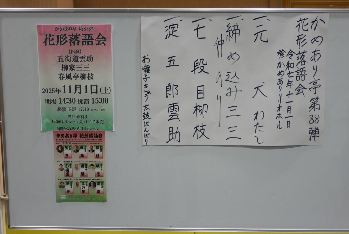 今日はお昼に千葉県市川市の市川市文化会館にて落語会!!なんだけど、インターネットの検索で全然出てこない…あるよね?三三師匠と鷹治さんと和妻のきょうこさんとなんだけど… 来年の3月に喬太郎師匠と同じ会館であるっぽい。それは出てくる。 え?あるよね? 千葉まで行き損はやだよ?