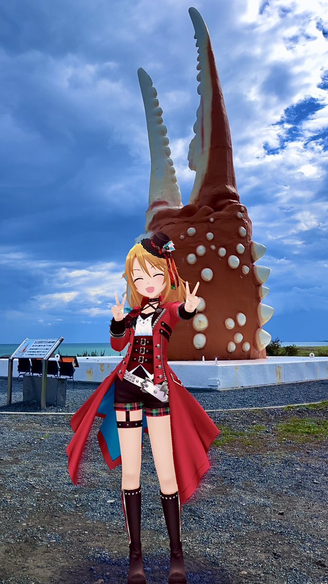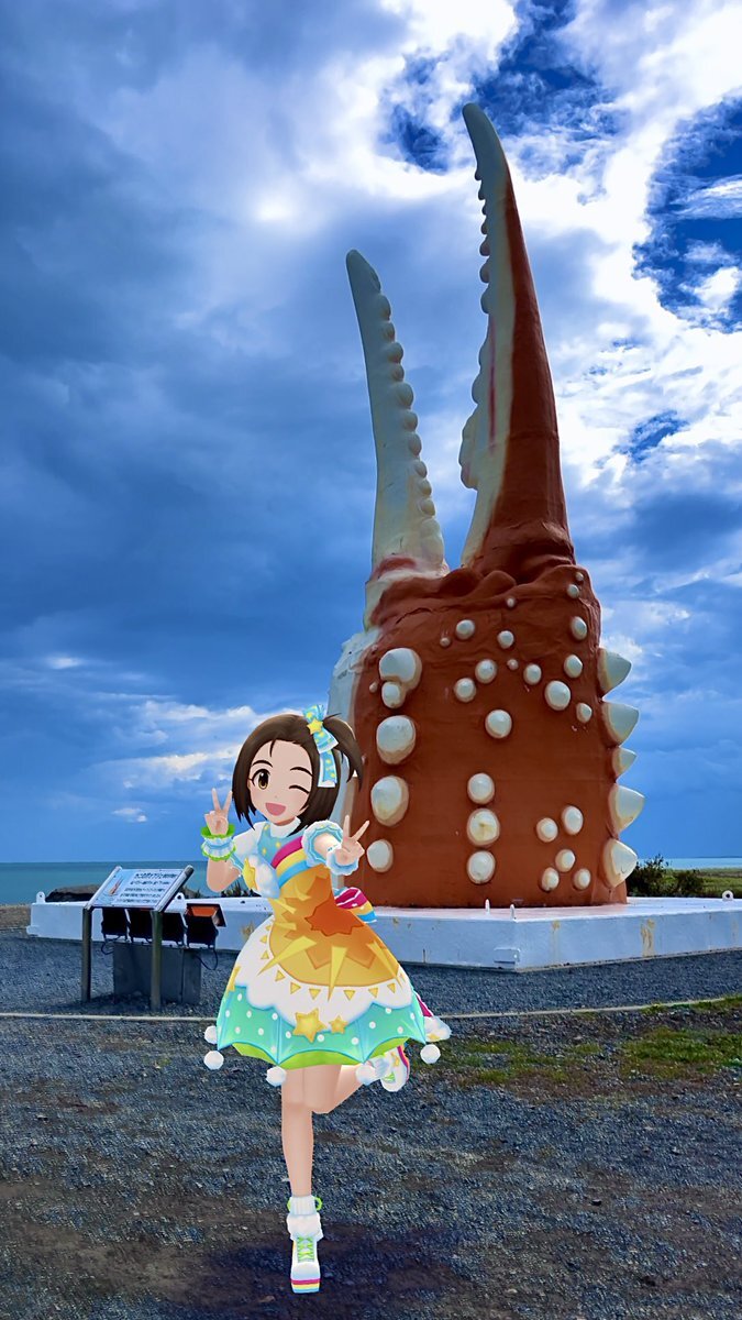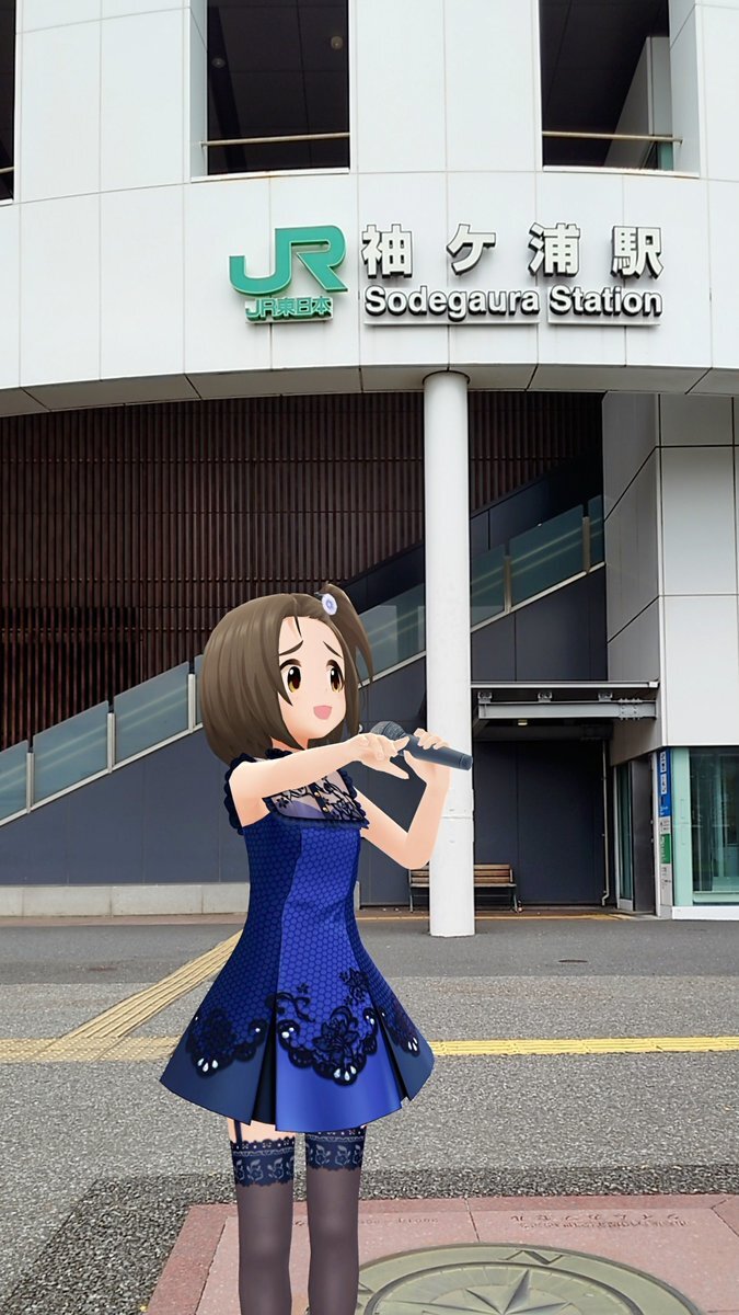 デレスポリハビリ 袖ヶ浦駅前にて熱唱する美由紀ちゃん 「香川 新潟 大阪 宮城 姫路 山口 袖ヶ浦〜♪」 (中島みゆきさんの「流星」) #柳瀬美由紀 #デレステAR #デレスポAR pic.x.com/J9qUxyiggG