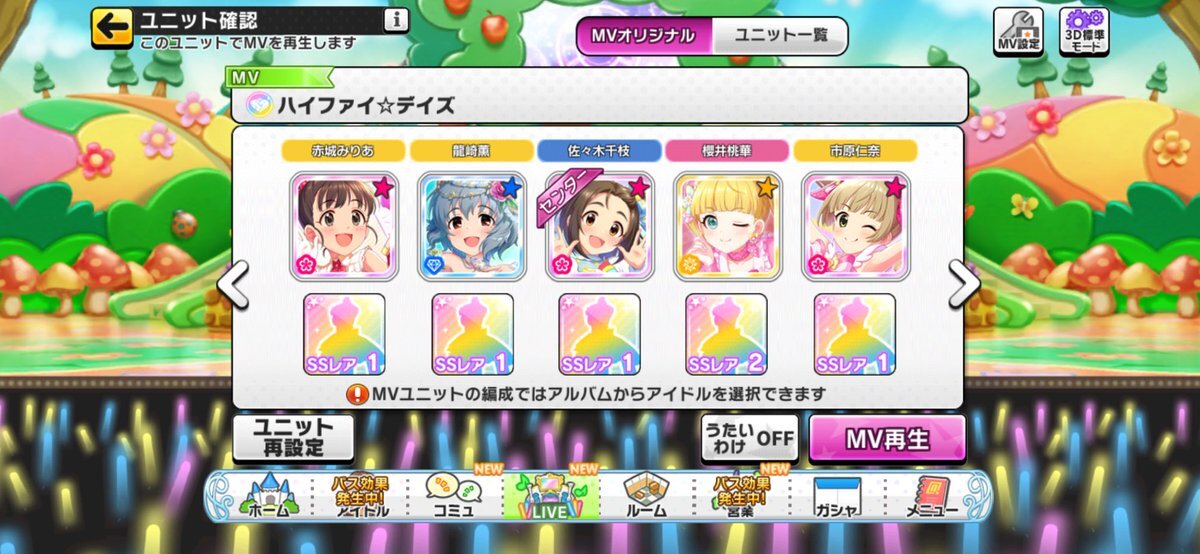 勧誘チャレンジで大体仕上げにしているMV SMARTのS(mile)ing!!で達成してるけど、『こっちだ∑(゚Д゚)‼︎』と気付いて撮り直し/ハイファイ⭐︎デイズ #柳瀬美由紀 #成宮由愛 #メアリーコクラン #福山舞 #横山千佳 #デレステスクショ夜の1枚 +1 pic.x.com/7kZUcp1NyY x.com/d3_961775/stat…