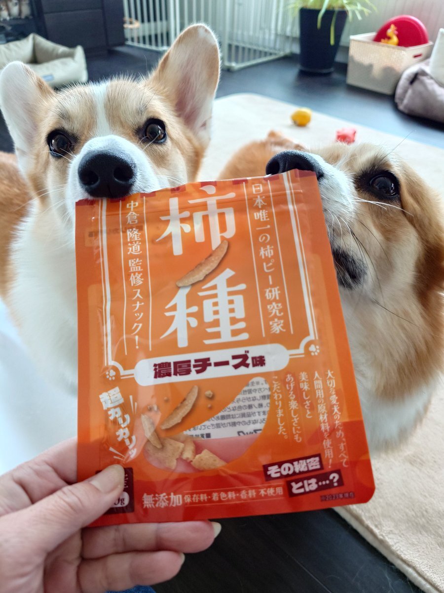 「こんな味あるんだねー」ってポリポリ食べる旦那…それ犬用だよw人のより高いから食べるの止めて!って昨夜の会話🤣犬用とは思わなかったらしい🤣 #コーギーのいる暮らし #コーギー #柿の種 pic.x.com/dg2LESJI5i