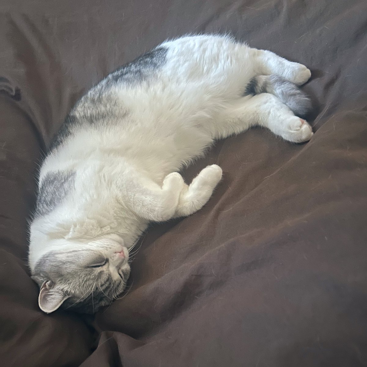 目覚めたら股の間で寝てる愛猫 #猫 #ねこ