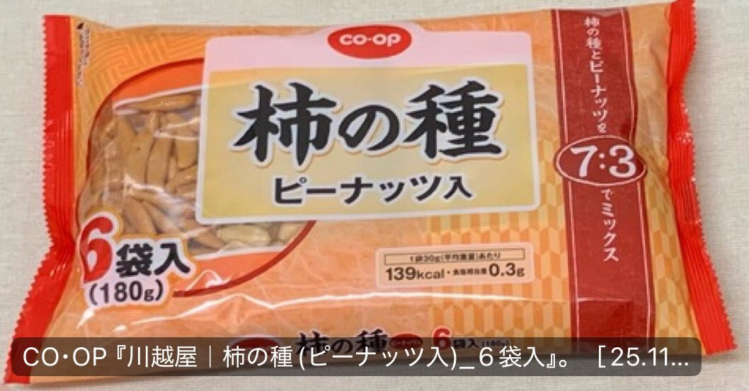 CO・OP『川越屋|柿の種(ピーナッツ入)_6袋入』。[25.11.12.Wed.] : 変な日本語を使っているので見られたくない(定期。 #コープ #川越屋 #柿の種 #ピーナッツ入 #食べきりサイズ #たまうつ食堂 blog.livedoor.jp/ddmp/archives/… pic.x.com/7FRtDPdHgj