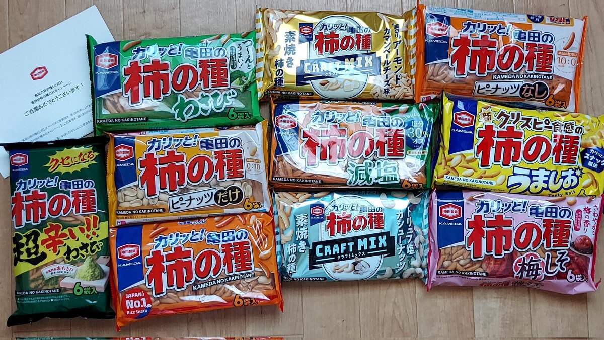 Xで当選した柿の種 全10種 届きました🤗 普段は買えないトリュフ塩が楽しみだわー 亀田製菓さん、ありがとうございます 柿の種は一生 亀田推し👍 #亀田製菓 #柿の種 pic.x.com/Gm2EtE5IzO