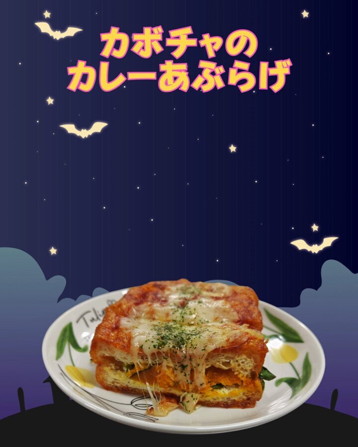 #道の駅R290とちお の #期間限定メニュー のリリースです #ハロウィン にちなみ #カボチャのカレーあぶらげ を 10月31日と11月の土日祝日 限定提供します #カレー味 の #あぶらげ に カボチャを挟み チーズを乗せ加熱、提供前には #バーナー で #チーズ を炙ります ご笑味下さい #道の駅とちお #栃尾