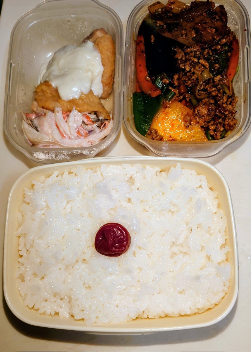 今週のジジ弁IMA😂!? 11/10(月) 彩り野菜のピリ辛中華風炒め・鶏の塩焼きホワイトソース掛け 11/13(木) 彩り野菜の玉子焼き・栃尾揚げと根菜の煮物 11/14(金) チキンライス・海老グラタン 来週はどんな弁当作ろかなMAJI😂!? #弁当 #栃尾揚げ pic.x.com/vbOyVqrDg4