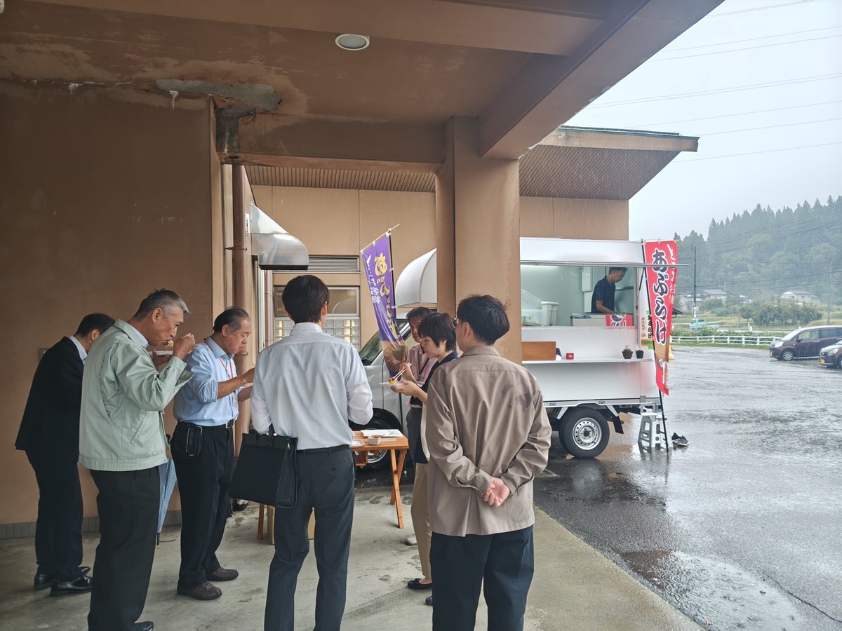 生憎の雨模様ですが、#キッチンカー #栃尾魅力発信号#道の駅R290とちお #勝沼副駅長 が関係者を前に プレ #あぶらげ 揚げたての提供を行い、関係者に振る舞いました オペレーションの部分や揚げ時間、温度など何度も試しながら #栃尾あぶらげ をより美味しく提供する時間と温度を模索 pic.x.com/Oe3eFD8q0g