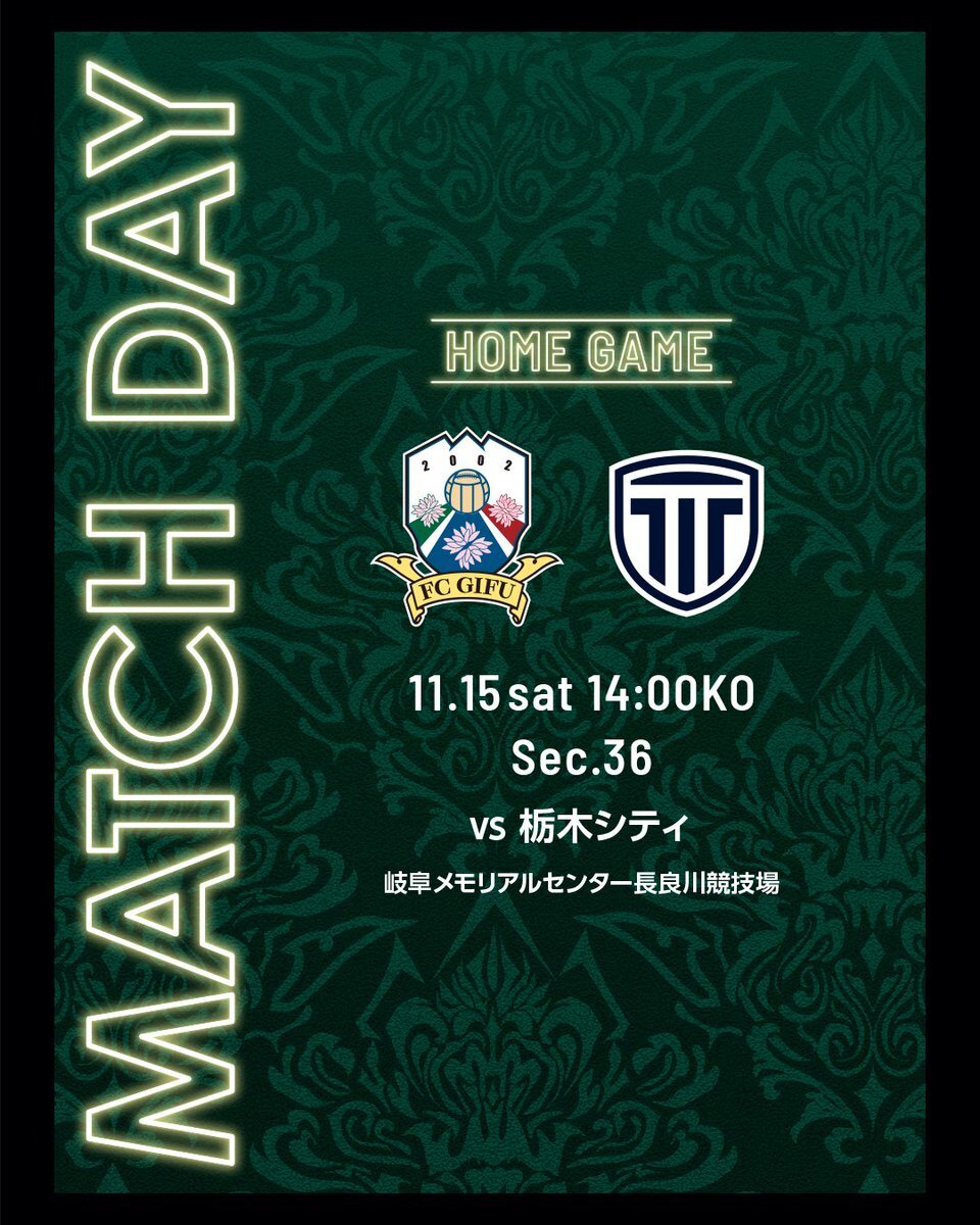 ◥◣MATCH DAY◢◤ 🏆明治安田J3リーグ第36節 ⏰11/15(土)14:00KO 🆚FC岐阜 🏟️岐阜メモリアルセンター長良川競技場 現地でリモートでそれぞれの場所から今日もともに🤝 🔹現地観戦情報 tochigi-city.com/new/2025/11/14… 🔸PV開催情報 tochigi-city.com/new/2025/11/12… #栃木シティ