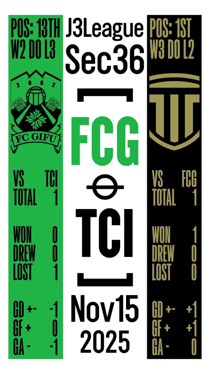 #J3リーグ2025 第36節 #FC岐阜 対 #栃木シティ 夢に敗れても、必ず前を向いて。自滅で枯れた岐阜は、首位シティを長良川に迎える。革命前夜の栃木C、だが岐阜のやることは変わらない。強敵シティにリベンジする、あのずぶ濡れの惜敗を晴らす時。 これは消化試合ではない、明日へ種を蒔く重要な一戦。 pic.x.com/aqB5MgdMj0