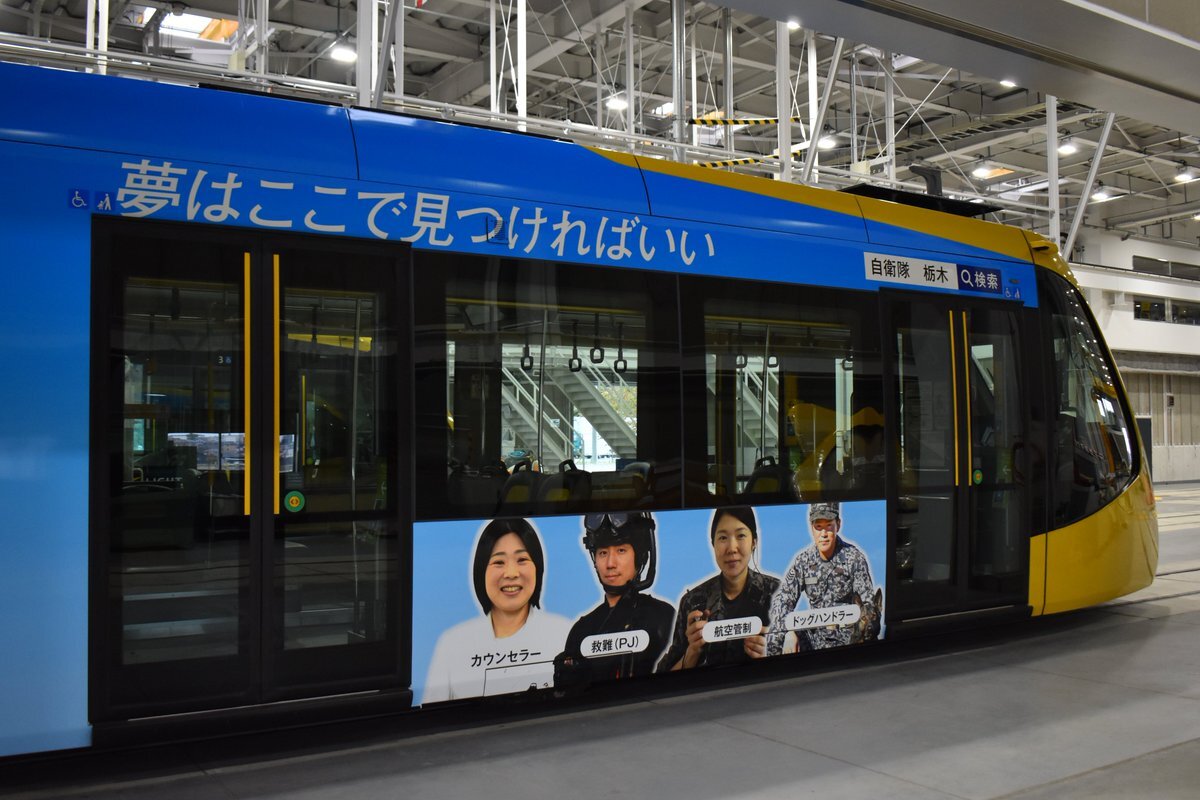 自衛隊ラッピングLRT 『自衛隊号』に、みんなもう乗った? #LRT #自衛隊 #栃木地本 pic.x.com/5Qtsf8Ajjb