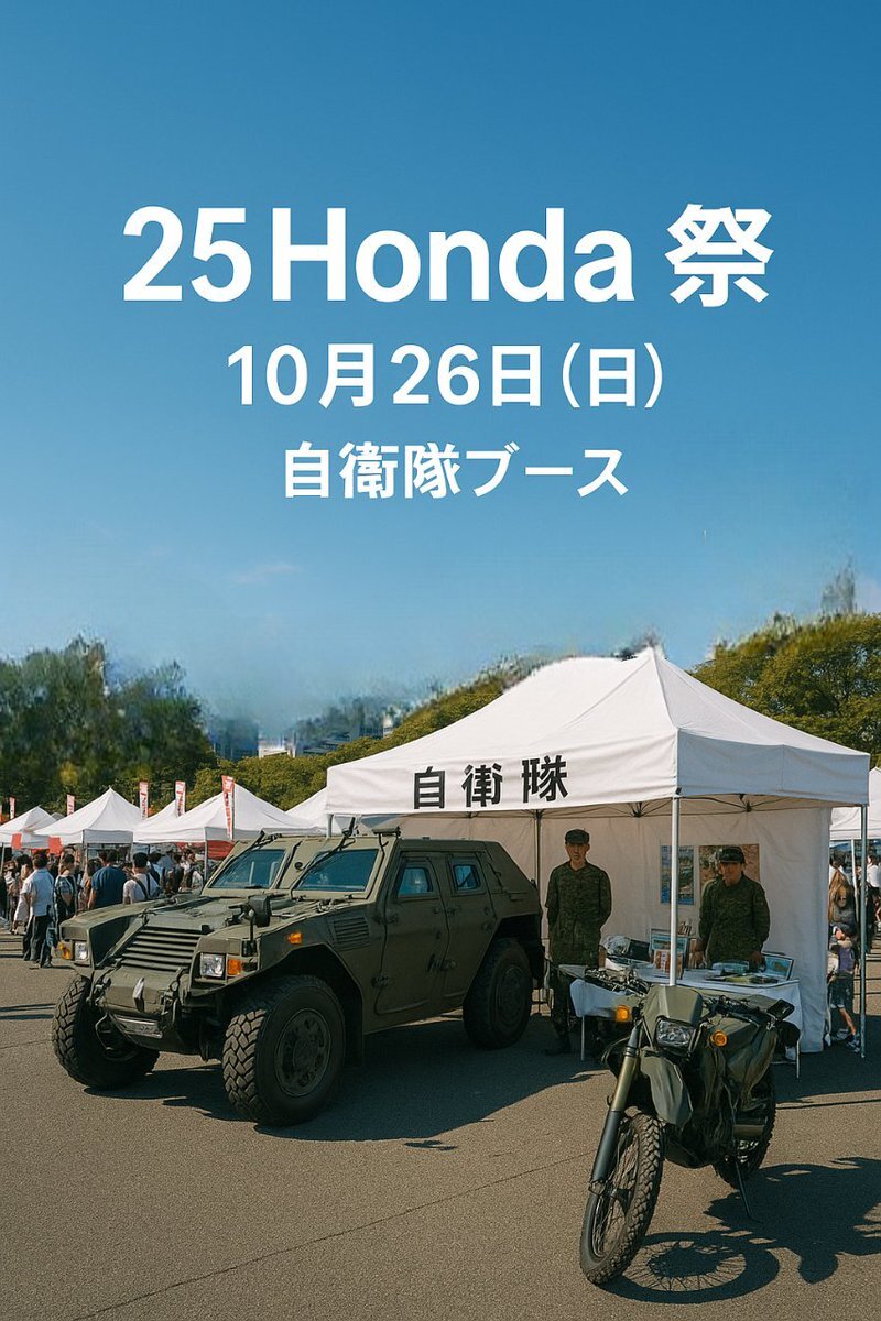 「25Honda祭」10月26日(日) 10時から本田技研工業(株)特設会場で開催します 自衛隊ブースにもぜひお越しください!! 自衛隊車両も展示してます(^^) 25soyukai.wixsite.com/mysite #栃木地本 #イベント情報 #真岡地域事務所