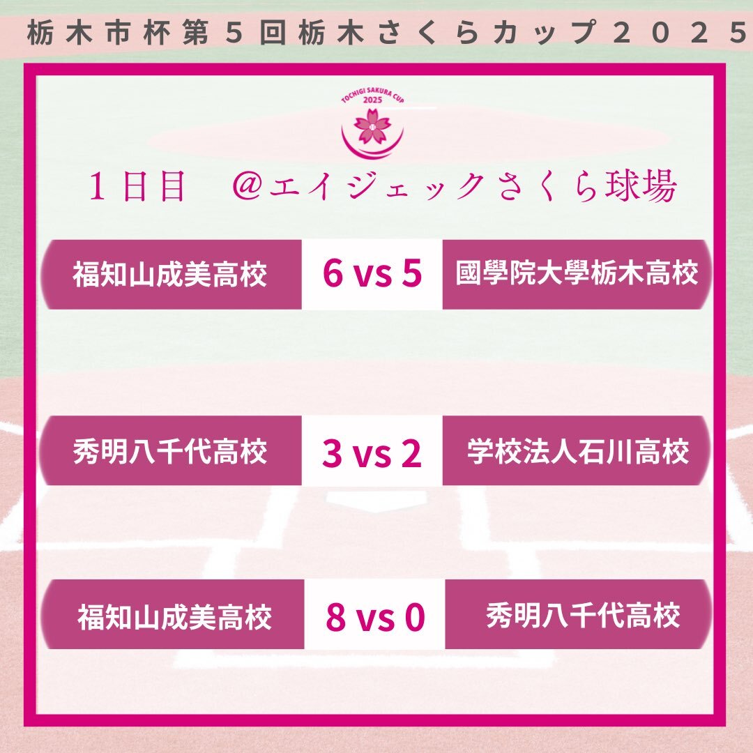 🌸#栃木市杯第5回栃木さくらカップ2025 🌸 【高校の部】大会1日目第1試合 🏟エイジェックさくら球場 #國學院大學栃木高校 000 000 5 |5 400 000 2×|6 #福知山成美高校 #栃木さくらカップ2025 #女子野球 #栃木市 pic.x.com/NeETAfLMgL