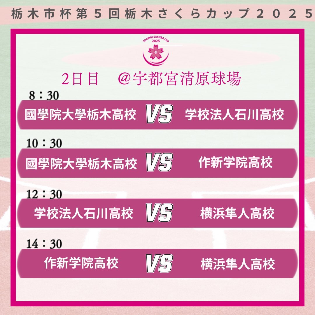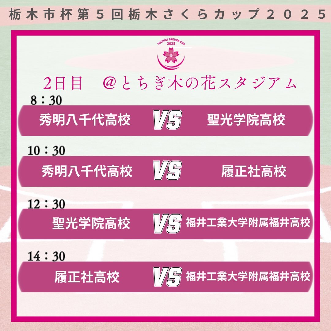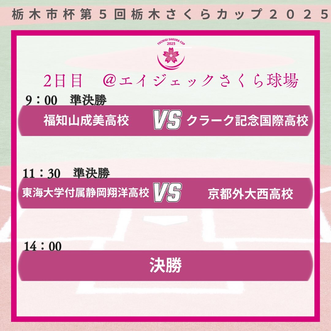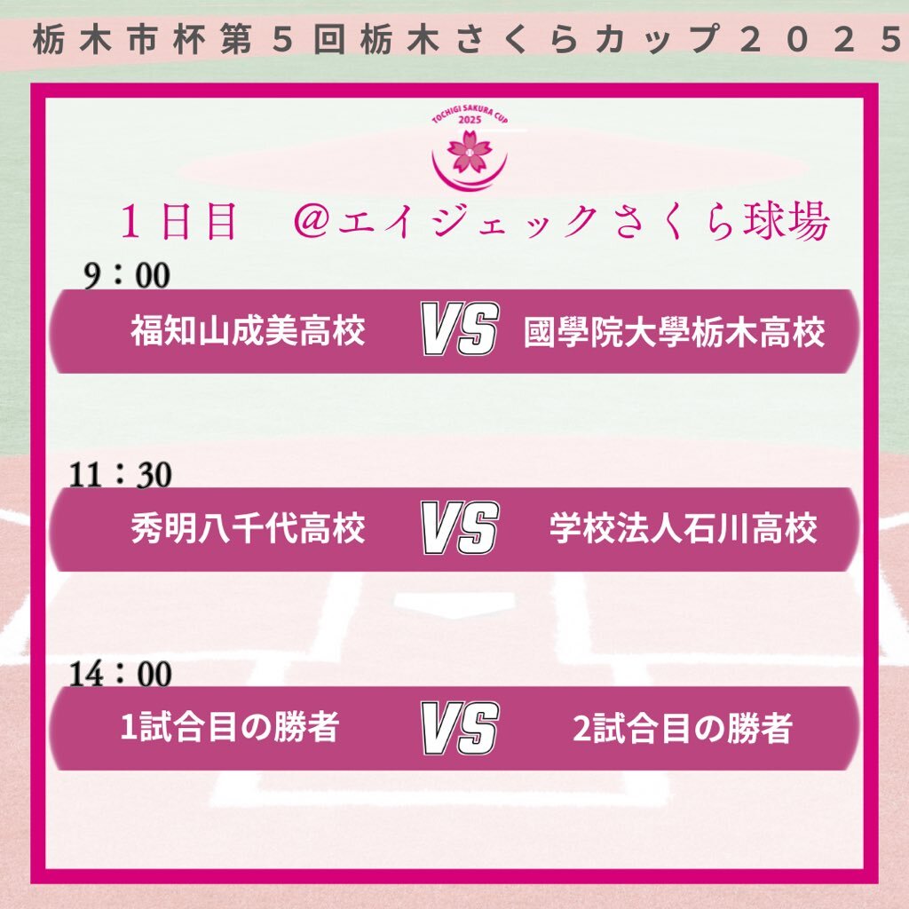 🌸#栃木市杯第5回栃木さくらカップ2025 🌸 【高校の部】大会2日目スケジュール エイジェックさくら球場にて準決勝・決勝🏆✨ ※ライブ配信あり📹 また、他3球場では交流戦も行います💁‍♀️ ぜひ球場で女子野球をお楽しみください✨ #栃木さくらカップ2025 #女子野球 #栃木市 pic.x.com/BXHOYL6rsI