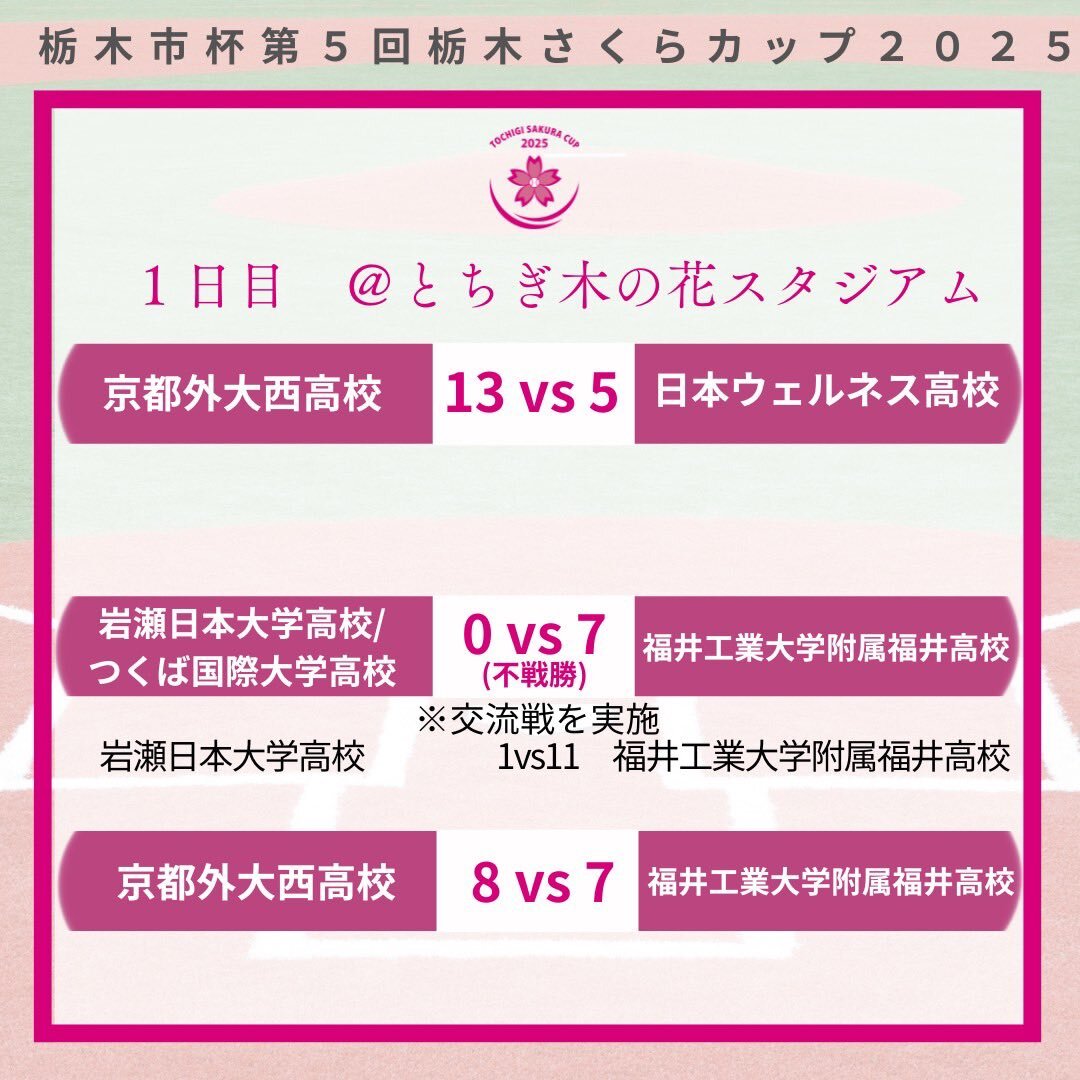 🌸#栃木市杯第5回栃木さくらカップ2025 🌸 【高校の部】大会1日目第2試合 🏟とちぎ木の花スタジアム ※大会規定により #福井工業大学附属福井高校 の不戦勝 (交流戦として試合を実施) #岩瀬日本大学高校 001 0 |1 720 2 |11 #福井工業大学附属福井高校 ※4回コールド pic.x.com/I7IzEZS8bd