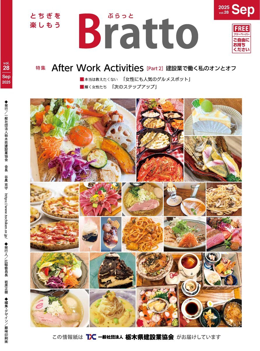 / 🗣#Bratto#ぶらっと)Vol.28 \ 🔸特集『After Work Activities[Part2]建設業で働く私のオンとオフ』 🔸本当は教えたくない「女性にも人気のグルメスポット」 🔸輝く女性たち「次のステップアップ」 詳しくはこちらをご覧ください✨ tochiken.or.jp/?p=46195 #栃木県建設業協会 pic.x.com/4ZWFwAh1YG