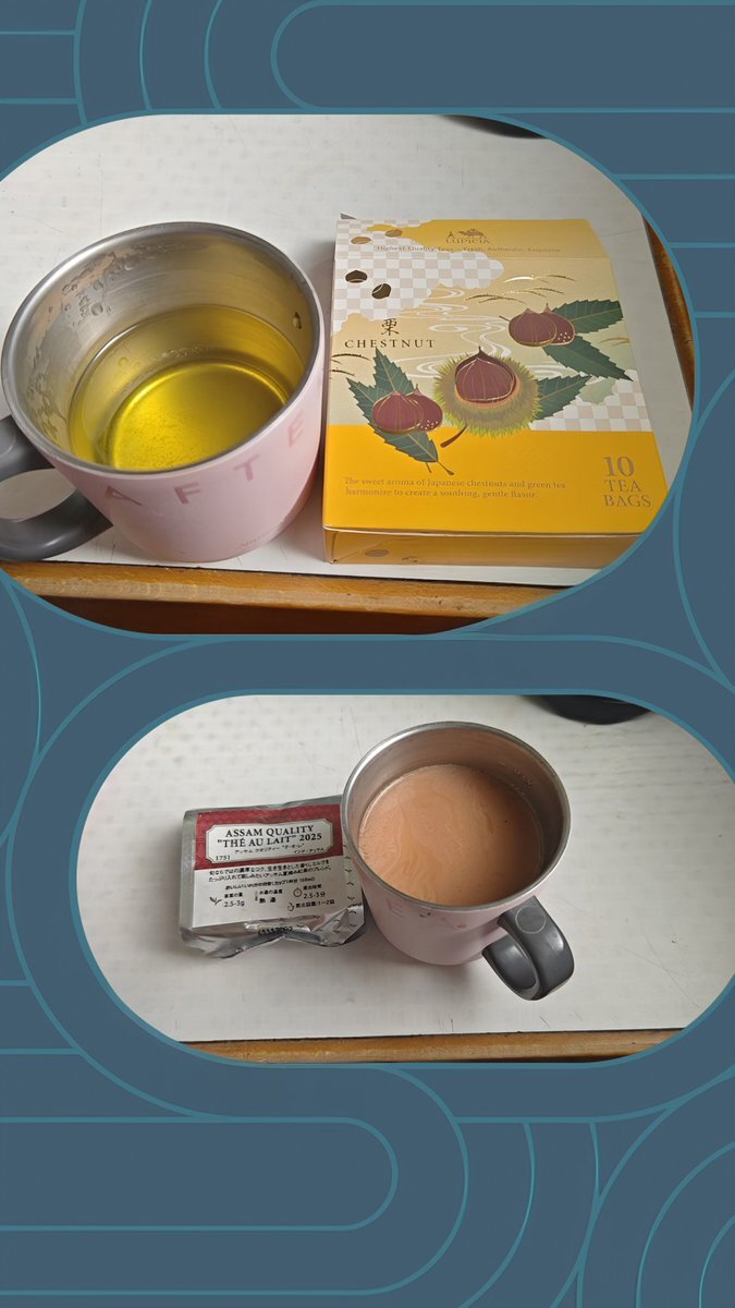 ☀️今日のランチのお茶会☕️ ランチにはルピシアの「アッサム クオリティー テ・オ・レ」で濃厚ミルクティー🥛 食後は「栗の緑茶」でほっとひと息🌰🍃 紅茶と緑茶、どちらも秋にぴったりの癒しの味でした🍂✨ #ルピシア #紅茶時間 #栗の緑茶 #ミルクティー pic.x.com/7RO8cwZw8e