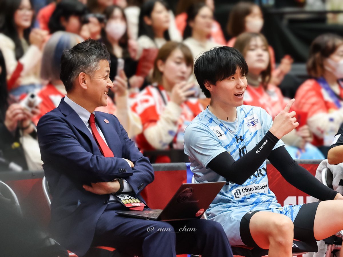 𝟐𝟎𝟐𝟓.𝟏𝟏.𝟏 第2節 vs東京グレートベアーズ🐻 📍Asueアリーナ大阪 栗原さんと談笑中( ˊᵕˋ ) #小川智大 選手 #栗原圭介 GM #サントリーサンバーズ大阪 #大同生命SVリーグ pic.x.com/vm0XnYSkAg