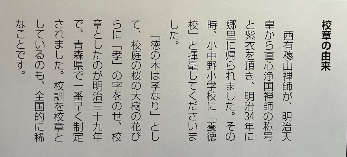 小中野小学校創立150周年記念誌より この校章は西有穆山禅師に由来する。校長室には禅師が揮毫した「養徳校」の額がかかっています。 #八戸市 #小中野小学校 #西有穆山 #養徳校 #創立150周年 #明治8年創立 #校章 # # pic.x.com/GQCPvsDlAH
