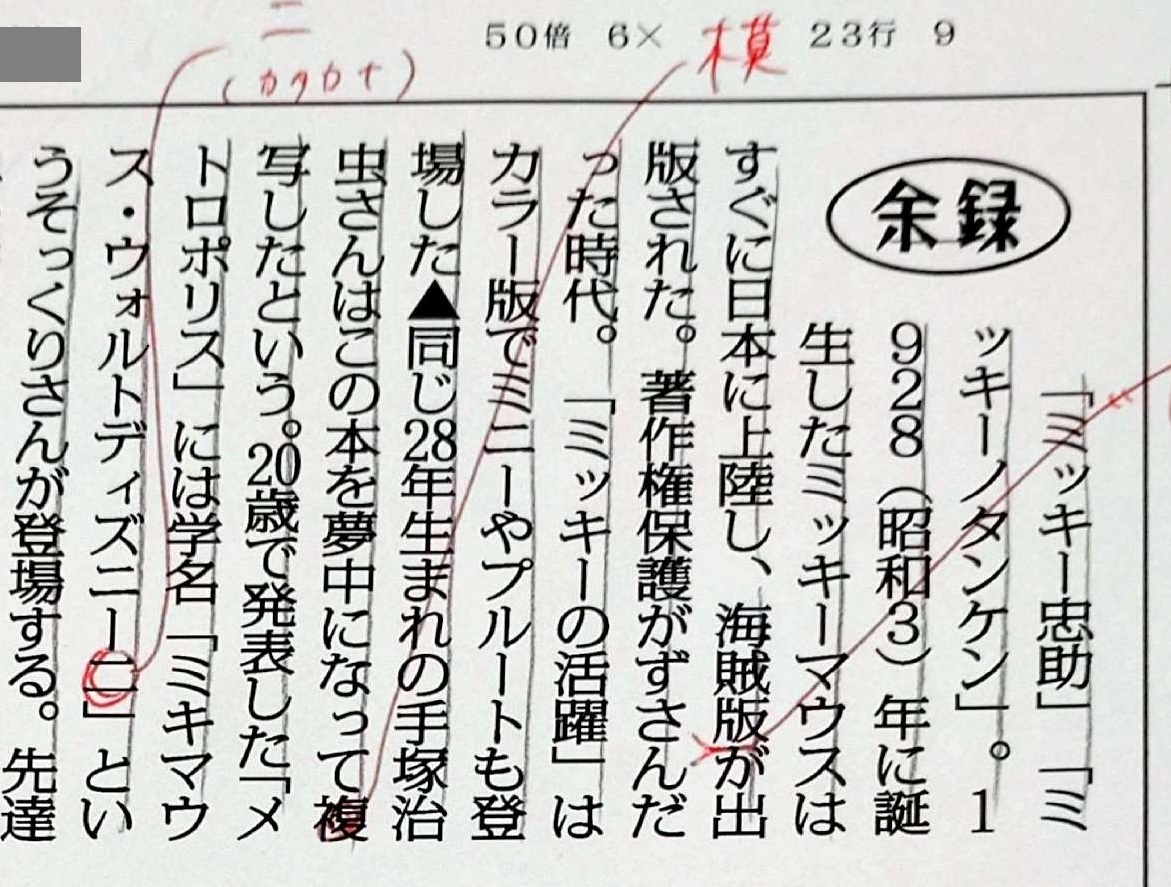 著作権保護がずさんだった頃、ミッキーマウスの海賊版の漫画を夢中になって「複写」したという手塚治虫さん。間違いではないですが、筆者とも相談し、原本の「複製」というよりも「忠実に似せて写しとる」というような意味で「模写」のほうがよりふさわしいと判断しました。 salon.mainichi-kotoba.jp/archives/272956