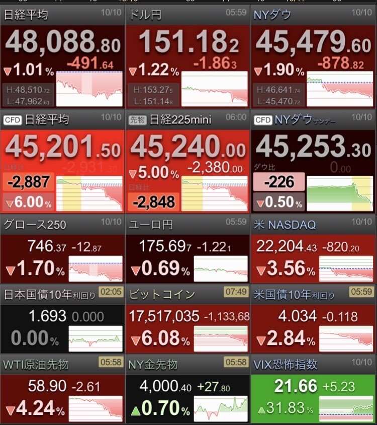 突如沸き起こった連立解消 高市総裁の御祝儀相場も来週は窓埋め アメリカも予算案否決日本も政局不安 時間外取引500円以上下落中 #日経平均株価 #金積立 #ビットコイン #株取引 pic.x.com/mRzQUZVj3h