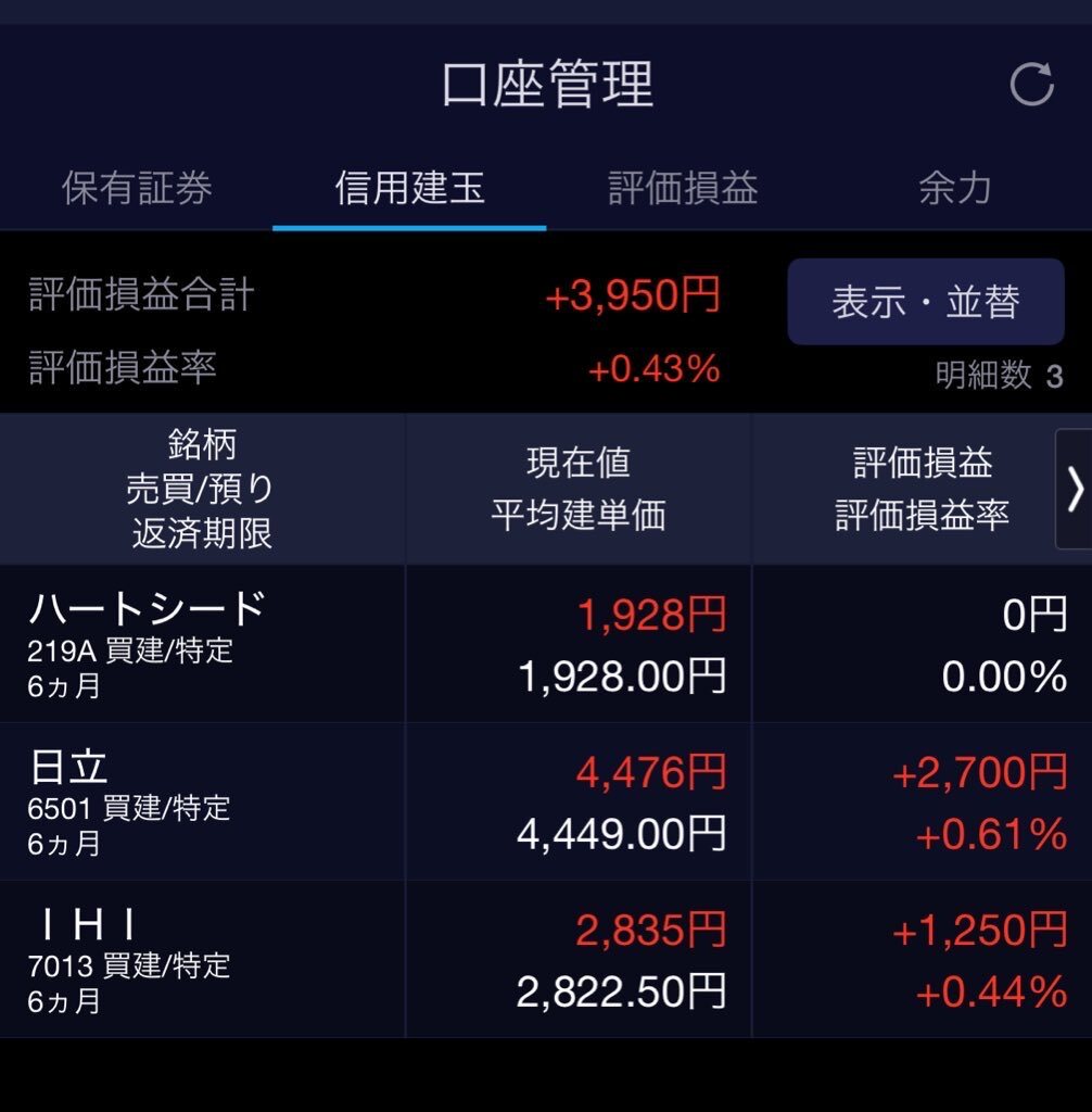 デイトレで日々資産を増やしていくことを目論んでいたが、自分が余りに天井で手を出してその後含み損を抱えるので自重し、長期ホールドして配当、優待狙いの方が健全なのでは?と思えてきた…(笑)#株取引 #高市相場に感謝